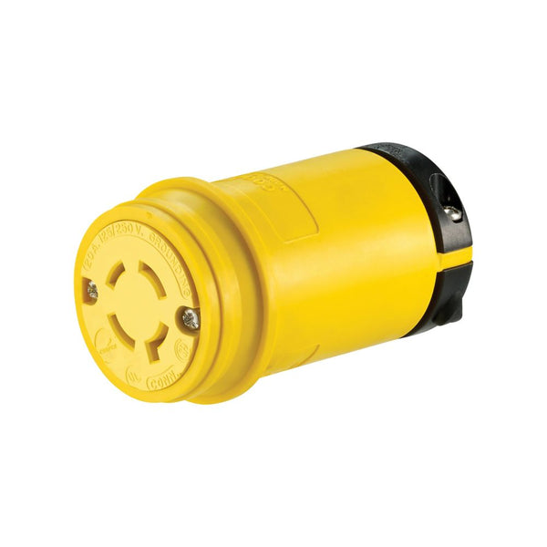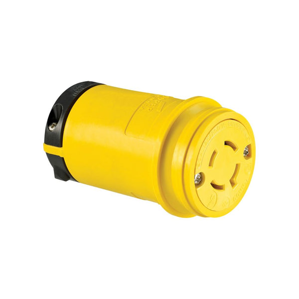 Eaton severe duty locking connector, #18-10 AWG, 20A, Industrial, 125/250V, Back wiring, Yellow, black, Severe duty, L14-20, Three-pole, Four-wire, Santoprene thermoplastic elastomeric, 0.63 to 1.16 in