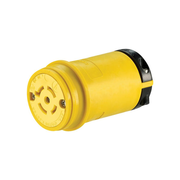 Eaton severe duty locking connector, #18-10 AWG, 20A, Industrial, 120/208V, Back wiring, Yellow, black, Severe duty, L21-20, Four-pole, Five-wire, Santoprene thermoplastic elastomeric, 0.63 to 1.16 in